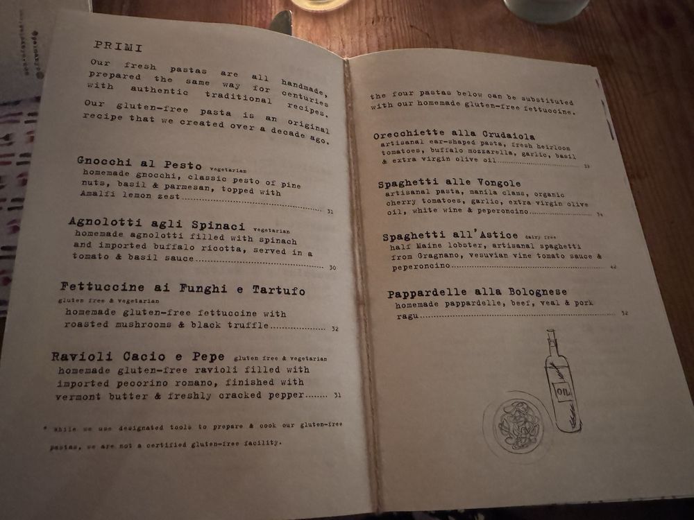 Handmade gluten-free pasta filled with ricotta, pecorino and freshly cracked black pepper(gluten free, vegetarian)